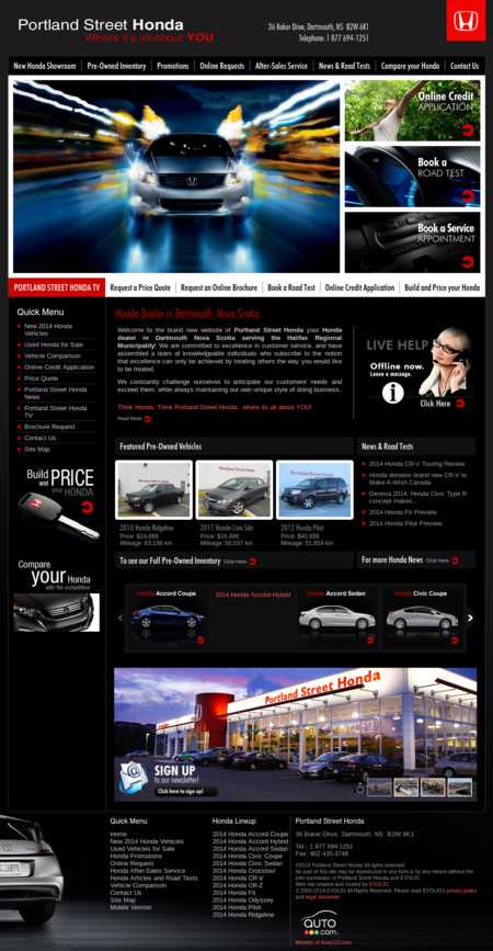 Portland Street Honda, located in Dartmouth, Nova Scotia (Canada) serves the Halifax Regional Municipality with a wide selection of new and used Hondas. The website offers up to date promotions, as well as a preview of their new and previously owned vehicles. Customers can get a price quote and apply for credit right on the website. Call, click, or come in to Portland Street Honda to discover just the right vehicle to fit your budget!