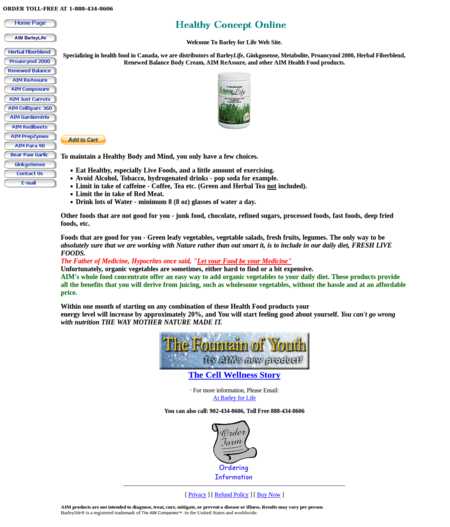 Healthy concepts for living is essential for making sure your body is perfectly in tune with what it needs, and what supplements you could be using. At the Barley for Life Web Site, you can find a variety of important information on what you need to intake, and what not to intake, to ensure a healthier, more active lifestyle. Call Toll Free or e-mail to find out how you can take advantage of the life changing benefits.