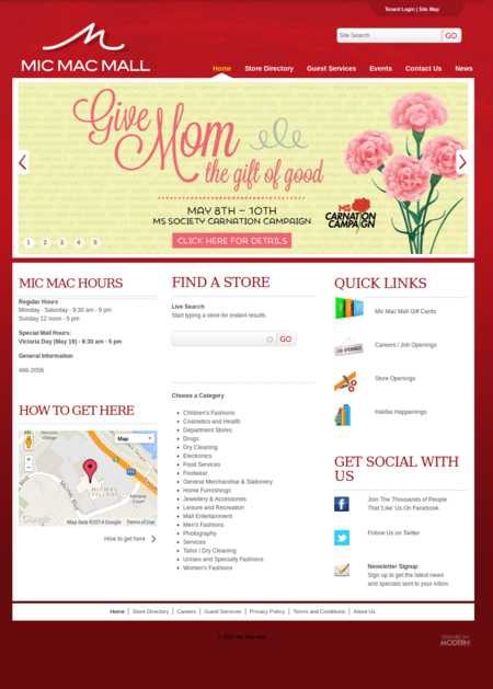 Mic Mac Mall is a shopping center located in Darmouth, Nova Scotia in Canada. Its store directory boasts a wide variety of shopping experiences, from fashions and footwear (men's, women's and children's), to home, electronic and entertainment goods. The mall is conveniently located in the suburbs of Lake Micmac and is on the Metro Transit bus line. It's one of the largest shopping centers in the Halifax Municipality, with over 150 stores and three floors of shopping.