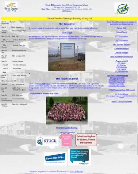 Astral Drive Elementary School in a school in Dartmouth, Nova Scotia. Their site is the central source for all school information, including newsletters, important anti-bullying information, teacher information, the code of conduct, and much more. The answers to common questions can be found, as well as contact information. For parents or students of Astral Drive Elementary School, or prospective students, the site gives an important look at the workings of the school.