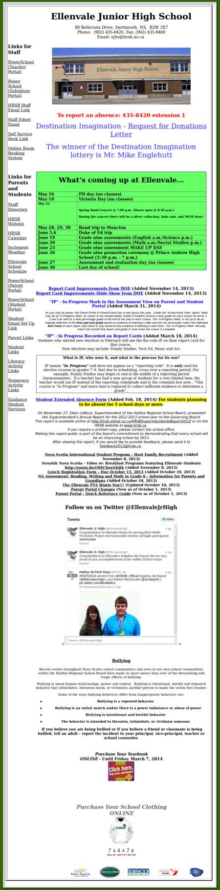 Ellenvale Junior High School is a public school located in Dartmouth, Nova Scotia. Grades 7 through 9 are taught at the school, with classes in both English and French immersion. Students who complete their studies at the school will go on to either Prince Andrew High School (English) or Darmouth High School (French). The official website offers a staff directory, event calendar, and updates on school closures due to national holidays, as well as inclement weather.