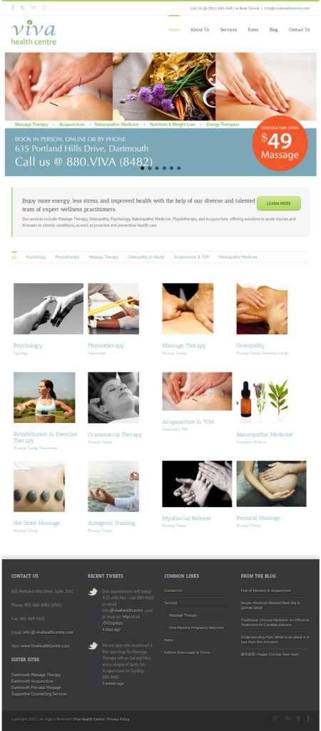 Viva Health Centre, located in Dartmouth, Nova Scotia in Canada, is a full service wellness clinic. Holistic practitioners offer a variety of relaxing and rejuvenating services, including massage therapy, physiotherapy, acupuncture, and custom tailored treatments to assist patients with chronic conditions or preventative health care needs. Viva has been in business since 2007 and is co-owned by Nail Melanson, a registered massage therapist, and Johneen Manning. Together, they share a passion for providing a calm retreat for health and wellness.